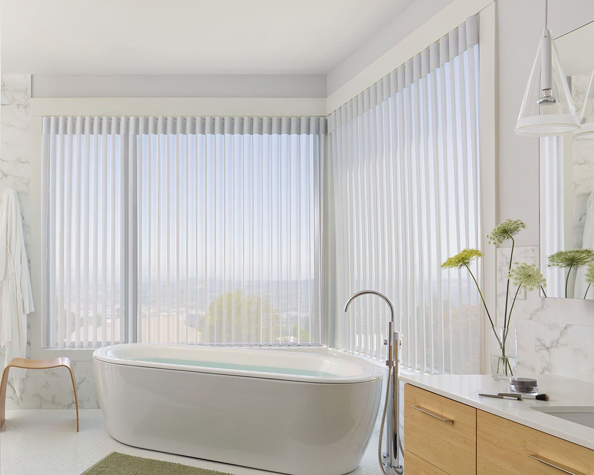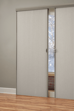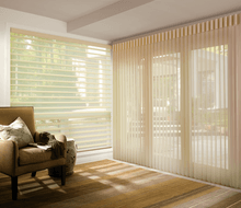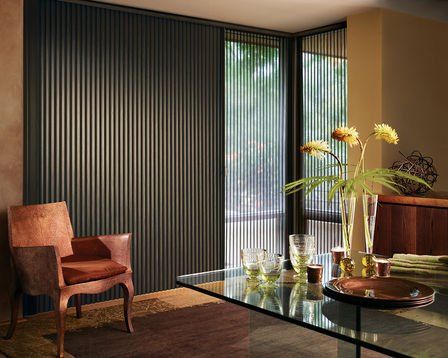 Our Somner® Custom Vertical Blinds offer the largest selection of colors, treatments and textures, from smooth metal finishes to geometric patterns—in fabric, vinyl and aluminum. Easy, precise light control. Everything from sliding glass doors to bay windows look prettier with our Somner® Custom Vertical Blinds, which feature easy operation and superior light control.