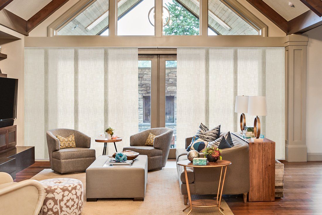 Achieve a coordinated look with a panel track system along with roller or roman shades throughout a room with windows of all sizes! Panel Track Shades can function as room dividers too! The Comfortex Panel Track System provides an easy solution for covering large windows and doors.