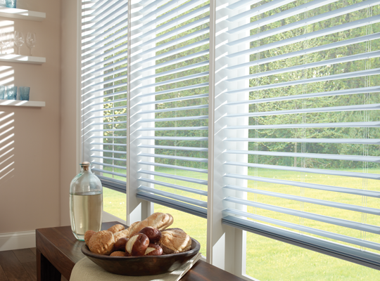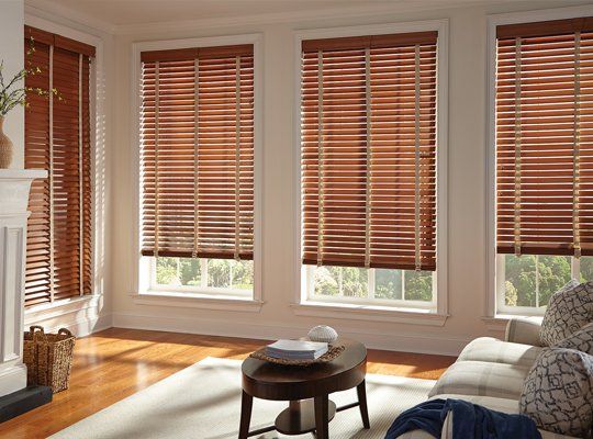 Traditional styling and rich hardwood slats ensure Parkland® Wood Blinds complement the lines of any room. Fashioned to create a warm and inviting home, they're available in a variety of colors and three slat sizes.