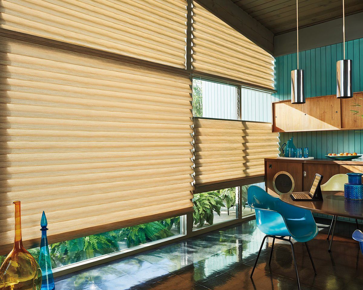 Duette Shades, by Hunter Douglas, the world’s first honeycomb shades and are still the most sought-after. And for good reason. Four different kinds of fabric– from sheer to fully opaque– give you the light control and privacy options you’ve never dreamed possible. Duette shades come in an extensive wardrobe of fabrics and textures with a remarkably wide spectrum of colors, from the softest neutrals to exquisite jewel tones. Cordless designs, retractible cords and cord tensioners offer enhanced child and pet safety. Motorization is a fabulous options for high windows.