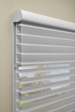 We also carry Shangri-La by Comfortex which comes in 2", 2 1/2" and 3" vanes and many soft colors to choose from plus motorization.
