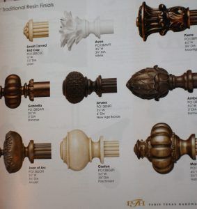 We carry Drapery rods and Hardware from Kirsch, Graber, Orion, Select, Gould, Paris Texas and Menagerie. This Selection includes Wood Rods, Resin, Metal, Bamboo, Glass, Stone and Crystal. See the vast selection of colors in each line.